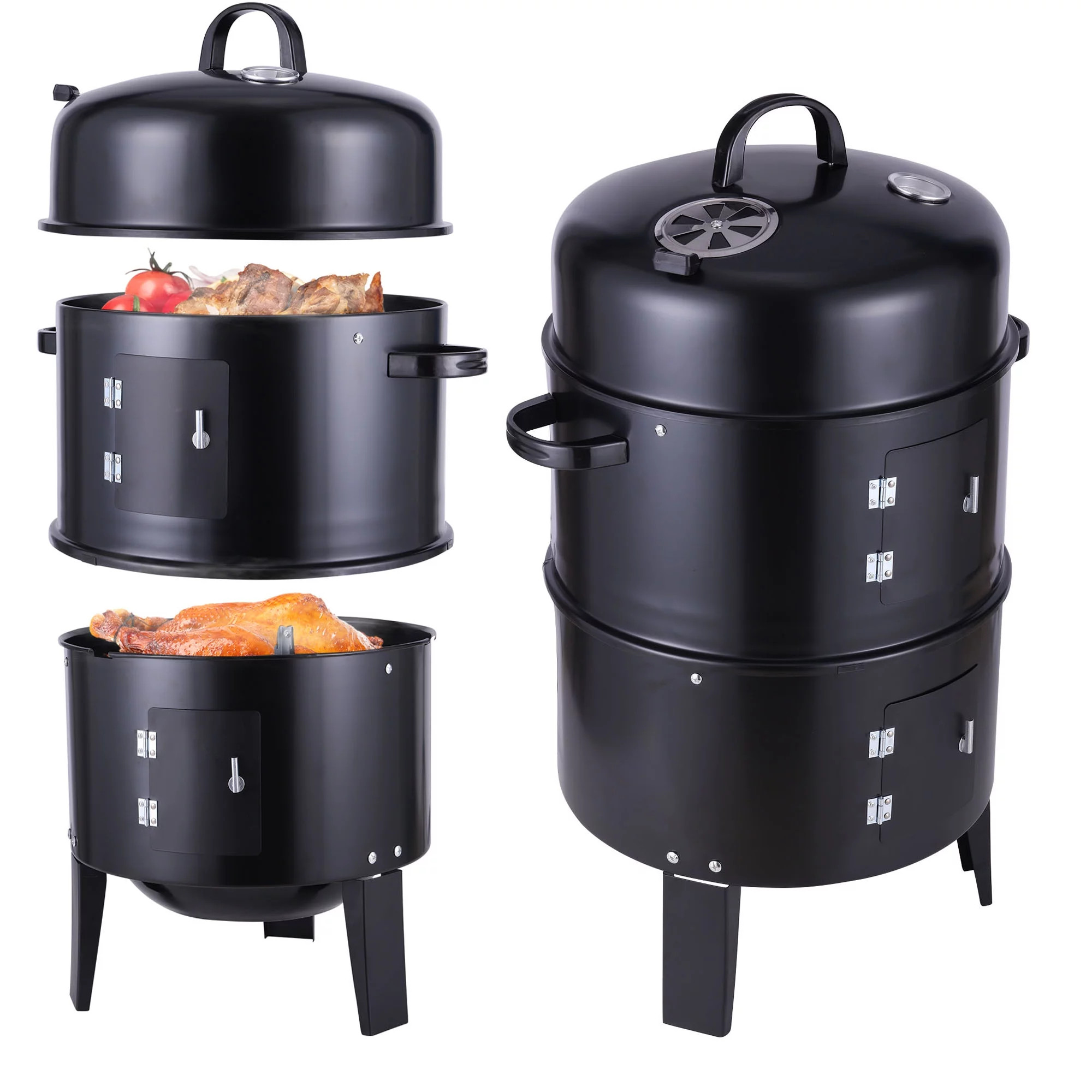 Fumador de carvão de aço vertical equipado com termômetro 3 em 1 para festa em casa 0